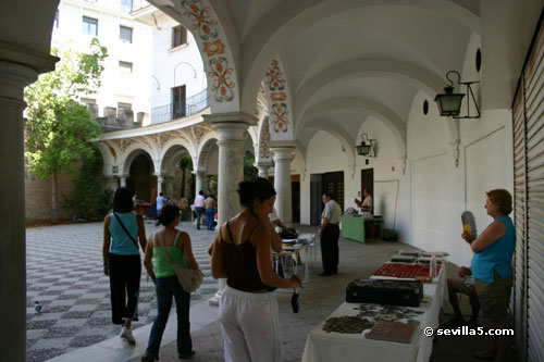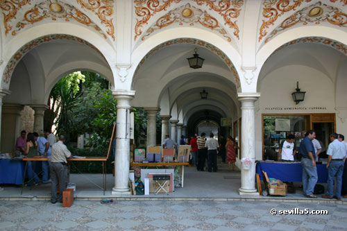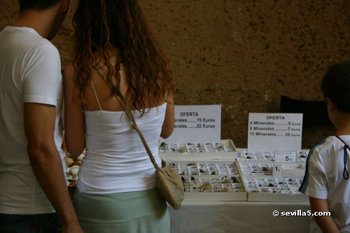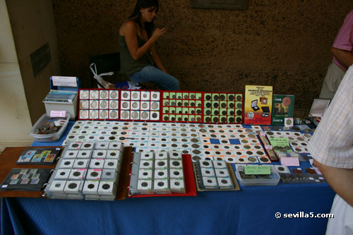Plaza del Cabildo Collectables MarketSeville, 22 August 2005Collectables such as stamps and coins. Every Sunday, from 9am to 2 pm. ![]() What was this square befor????. ![]() The Cabildo square has the form of a half circle, with marble columns supporting the higher floors of the building. ![]() The ??? is presented in the ???. ![]() Old coins, from a range of countries and dates. ![]() Semi-precious stones for collecting or jewelry making. ![]() The entire family is fascinated with the stones. ![]() Another stand with stones and jewelry. ![]() We leave the square through one of the two entrances. ![]() The exit towards Avenida de la Constitución, with the Cathedral in the background. Close Window |
