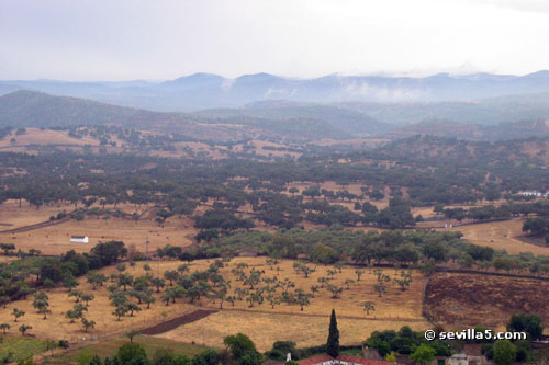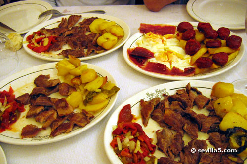 Sunday afternoon in AracenaAracena, 10 October 2005Traveling for a Sunday afternoon lunch is a common activity in Seville. With the beach weather coming to an end, Jeff and family decided to spend a rainy afternoon in the sierras around Aracena and nearby Jabugo for an afternoon. ![]() The landscape is a change from Seville: hills, green trees and fog. ![]() The visit starts with the Knight's Templar Church atop the hill overlooking the town. ![]() The entrance to the church. Inside it was very dark - little natural light because of the cloudy day. ![]() The Moorish castle is just above the church, and is now little more than a collection of old walls and towers. ![]() From the same hill we can see the town below. Hiking up and around the hill has taken a lot of our energy. We must refuel in nearby Jabugo... ![]() If you are visiting Aracena we can highly recommend a trip to the nearby town of Jabugo and lunch at Bodega Restaurante Jabugo (tel: 959 121 596). The specialty of this restaurant and the town in general is anything to do with pork: jamón, solomillo, secreto, presa and other cured meats. We sample a little of everything. ![]() After a meal and coffee we return to Aracena. The center of the city is paved with these little stones. ![]() I have eaten too much, and this dress does not seem to be a good fit... ![]() Aracena is also famous for it's unique ceramics. Some stores are eve open on a Sunday afternoon. ![]() Aracena's love of ceramics blends with the local delicacies. ![]() A view of the castle above the town. ![]() We have learned that you don't come home to mama empty handed. We pick up a surtido de pasteles (assorted pastries) from Confiteria Ruffino to bring home to family. Close Window |