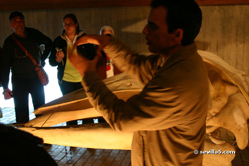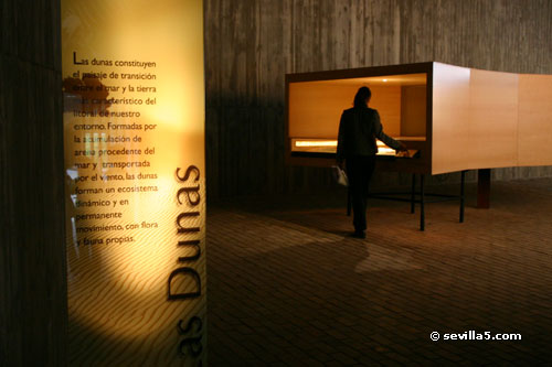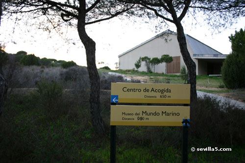 A visit to the Museo del Mundo Marino in MatalascañasSeville, 12 November 2005In its five thematic rooms, the Museo del Mundo marino takes the visitor on a journey through the different ecosystems and ethnographical features that can be found along the coast of Doñana, from shifting dunes to unspoiled beaches with annual whale appearances. ![]() As the museum opens at 3:30 pm we have time to first take a walk along the beach. ![]() After lunch at one of the terraces on the main beach, we walk into the Dune park where the museum is located. ![]() The entrance to the museum is about 650 m from the entrance to the park. ![]() The reception of the the Museo del Mundo Marino, complete with lockers to securely store your belongings while visiting. Cameras are permitted. ![]() The first room is dedicated to explaining how sand dunes support their own ecosystems. They reflect the permanent change of the Doñana area with their own fauna and flora. ![]() The main focus of the Museo del Mundo Marino are the cetaceans which can be found along the coast of Doñana. ![]() Included are 13 genuine cetacean skeletons. ![]() Here our guide explains how the ultrasonic navigation of the cetaceans work. ![]() The skeleton of a 20m fin whale. ![]() This section of the museum looks at the great transatlantic voyages which used Huelva as their point of departure, and the different ship building techniques used to construct the vessels involved. On display is a 8 m long wooden sailboat. ![]() Our guide explains traditional fishing methods as well as more modern solutions such as aquaculture. ![]() The Museo del Mundo Marino is small, but interesting. In one hour we have hardly had the time to see everything. The winter schedule means the museum closes at 6 pm, and we have to leave. PARQUE DUNAR Avda. de las Adelfas, s/n Matalascañas - Almonte (Huelva) Tel: 959 448 086 Web: www.parquedunar.com Email: parquedunar@donana.com Close Window |