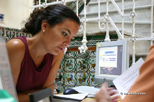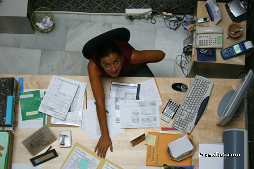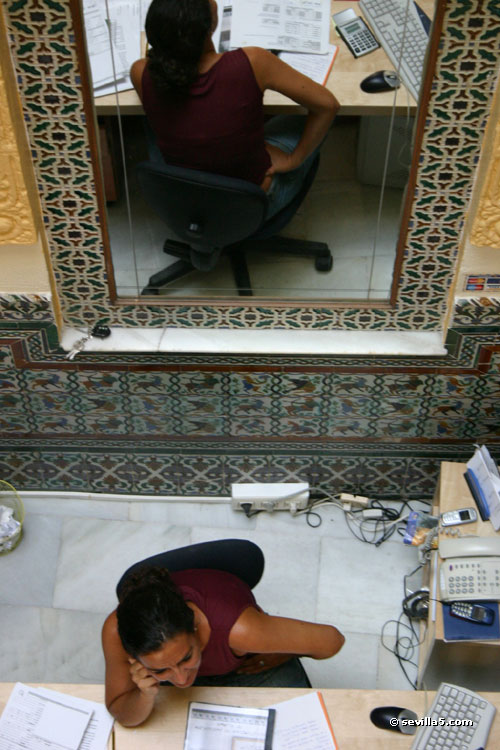 MARTA, new receptionist at InsulaSeville, 6 September 2005Marta just started to work at Insula Spanish school yesterday. ![]() Marta with "Jonny" in the hall of Insula Sevilla school. (His proper name is José Antonio, the Academic Director of Insula.) ![]() Marta has just started and still needs some clarification on a few items. ![]() Concentrating… you can see she will learn very fast. ![]() Still some problems with routing a telephone call upstairs to the Director's office, so Carmen makes a trip downstairs. ![]() Carmen writes down a few notes. ![]() Show me the button to press next time! ![]() A student has arrived. ![]() Tomorrow you will start with your class in time! ![]() We follow up the stairs to Carmen's office. ![]() View down to the first floor. ![]() Marta has spotted the camera above her. ![]() We enter the offices of the school's administration on the second floor. ![]() We say goodbye to Carmen and let her continue with her busy day. Close Window |
