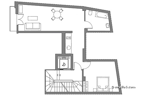 One bedroom apartment for up to 4 people located in the very center of Seville, in-between the main pedestrian area and Plaza Magdalena.