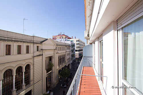 View from the balcony towards Plaza Magdalena. There is no car traffic, because calle Rioja is pedestrian.