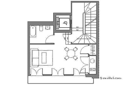 Studio-apartment for 2 people located in the very center of Seville, in-between the main pedestrian area and Plaza Magdalena.