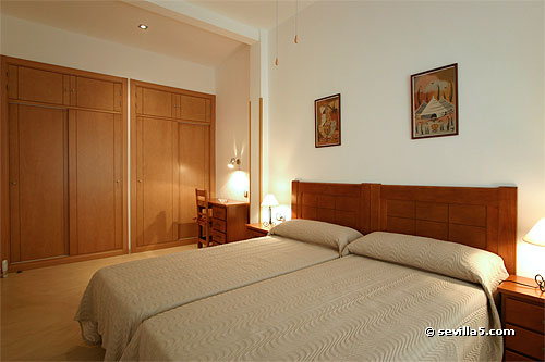 Spacious bedroom with 2 twin beds, writing desk and ample wardrobes.