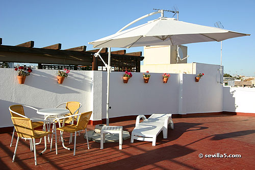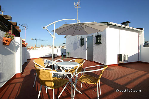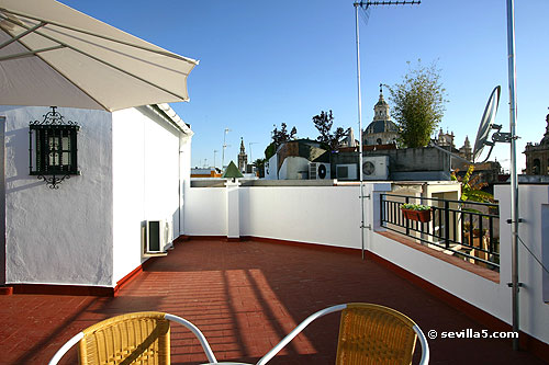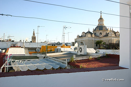 On the smaller side of the terrace are cabbles for drying the laundry. From here you have a very good view on the Iglesia del Salvador, which is the second largest church of Seville, after the Cathedral.