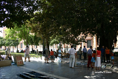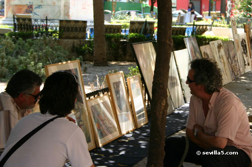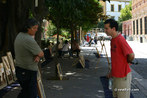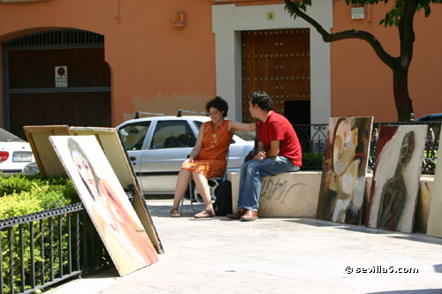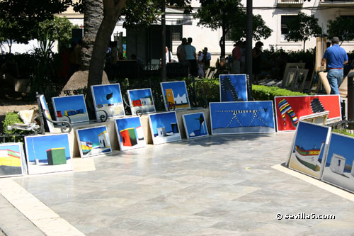 ![]() Plaza del Museo PaintingsSeville, 22 Agosto 2005Paintings and Art Market. Every Sunday, from 9 am to 2 pm. ![]() The Fine Arts Museum on the Plaza where the market is held. ![]() A statue of Murillo, the famous Spanish painter, sits in the centre of the square ![]() Art works are laid out around the Plaza for potential buyers to browse. ![]() Some are laid on the ground for a good view from above. ![]() Discussion with a potential, and smaller, buyer. ![]() One of the artists explains his paintings. ![]() Keeping out of the heat. ![]() Some discussion amongst the artists. ![]() Framed and ready for sale. ![]() Some colorful works. ![]() Maritime themes. ![]() The entrance of the Museum in the background. ![]() Sketches in the foreground. ![]() View from the entrance of the Fine Arts Museum. Close Window |
