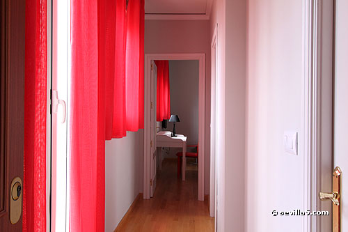 Aisle towards the living-room. The windows on the left goes to the terrace.