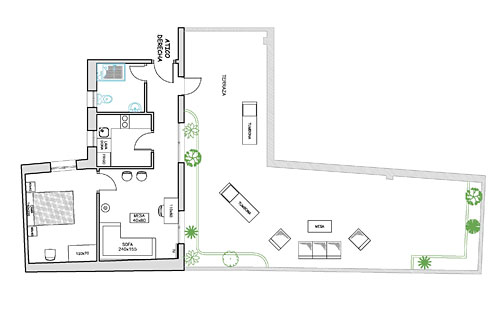 Floorplan of Alameda Terrace No. 2 apartment.