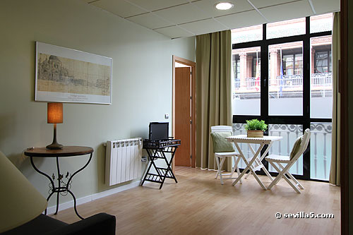 View from the kitchen window: The Indian Archive in the center and the Cathedral on the very left.