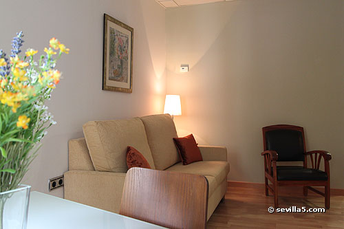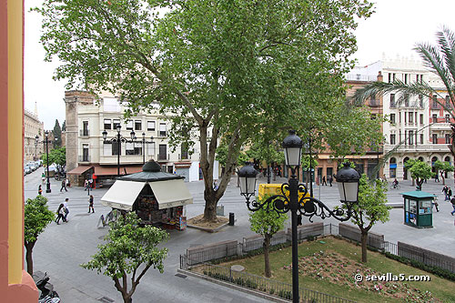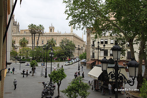 View from the bedroom window: Spectacular views on the Indian Archive in the middle, and the Cathedral on the very left.