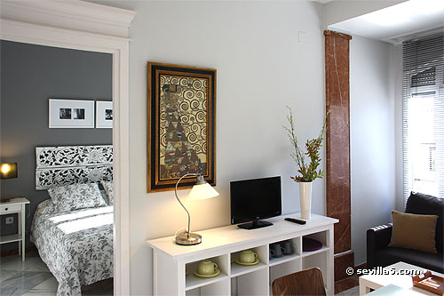 View from the living-room to bedroom nr. 1. The Alcazares Nr. VII is located on a fith floor, with elevator, and has lots of natural light.