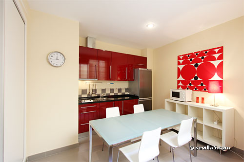 Kitchen with large dining table.