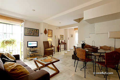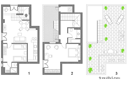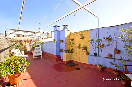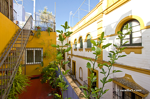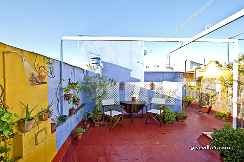 A steep iron stairway leads from the lower terrace to the roof-top terrace.