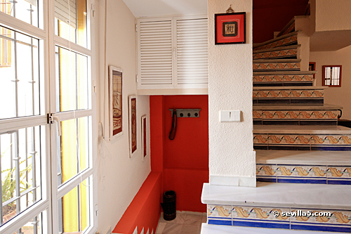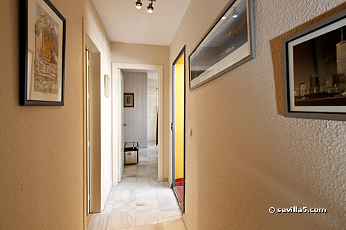 Corridor on the upper floor with doors to bathroom, bedroom and terrace.