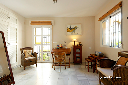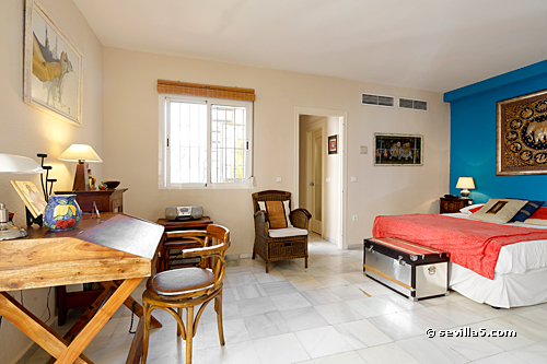 The master bedroom has its own seating area with desk and chairs (upper level).