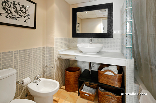 Bathroom No. 1 has access from bedroom no. 1 (lower level).