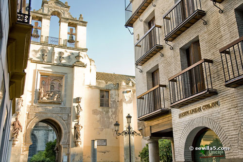 View from Hernando Colón street on the Puerta del Perdón of the Cathedral.