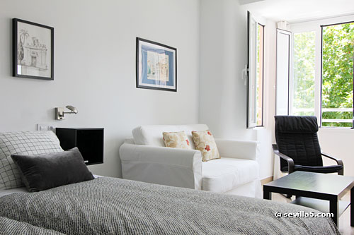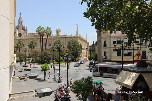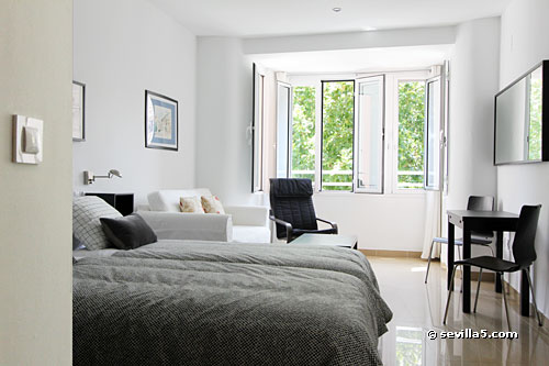 Window view on Avenida de la Constitución, a great location next to the Cathedral.