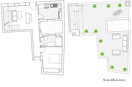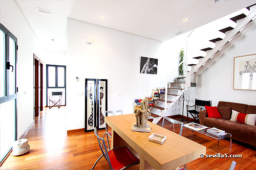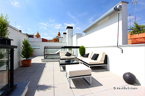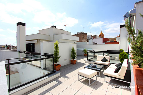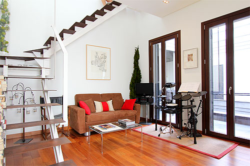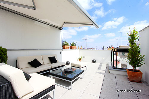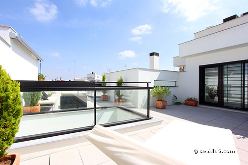 The terrace is on the 3rd floor of the building. Connected to apartment by an internal stair, which is behind the glass door.