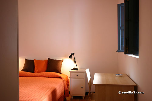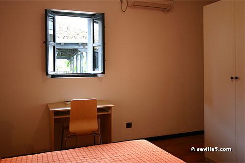 The bedroom has a small window to the courtyard.