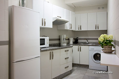 Full kitchen for self-catering. There is a washing machine, as well.