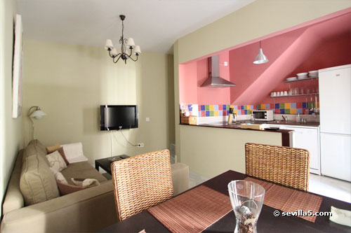 The Medinaceli Nr. 5 is a small house on two levels, with an independent entrance from the street. There is the living area and kitchen on the lower level, and the bedroom, bathroom with views to the interior patio on the higher level, connected by an internal staircase.