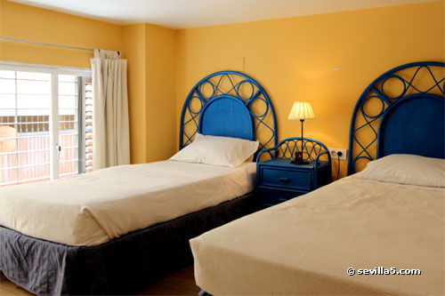 Bedroom on the upper level, with two twin beds. NOTE THAT THE CEILING OF THE BEDROOM AND TOILET ON THE UPPER LEVEL IS EXTREMELY LOW: 1,60m.