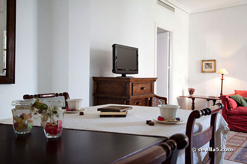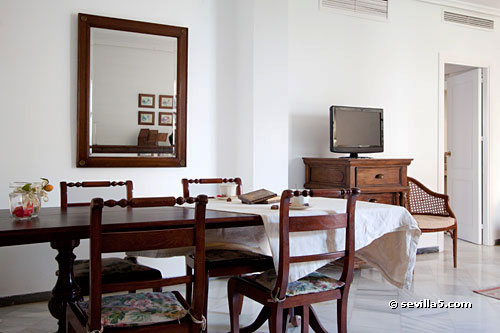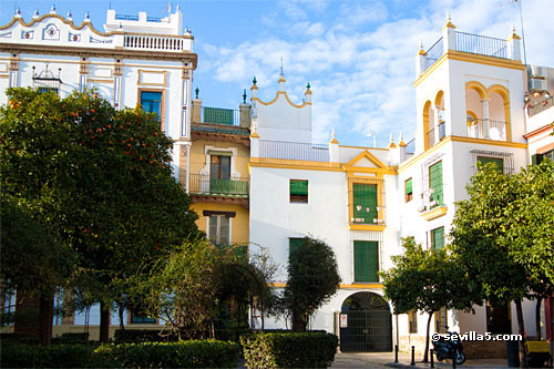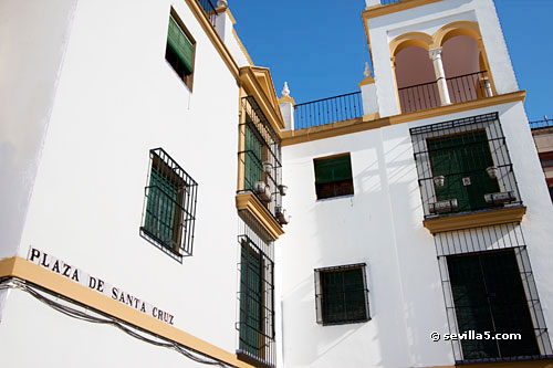 View on Plaza Santa Cruz towards the apartment building: a typical Sevillian house in the heart of Seville.