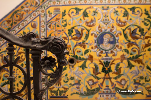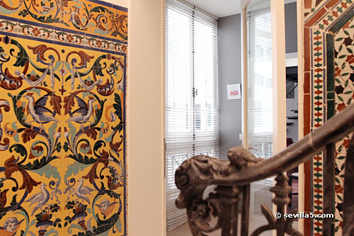 Building staircase covered with beautiful ceramic tiles painted in "cuerda seca".