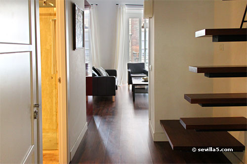 On the left you can see the stairway to the higher beds, which are on a platform above the entrance area.