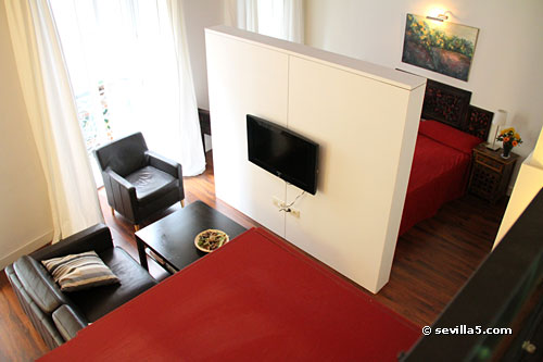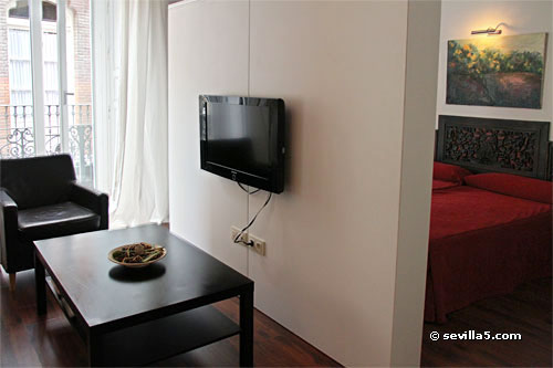 View on Álvarez Quintero street from the French balcony of the bedroom.