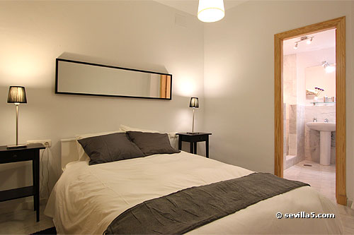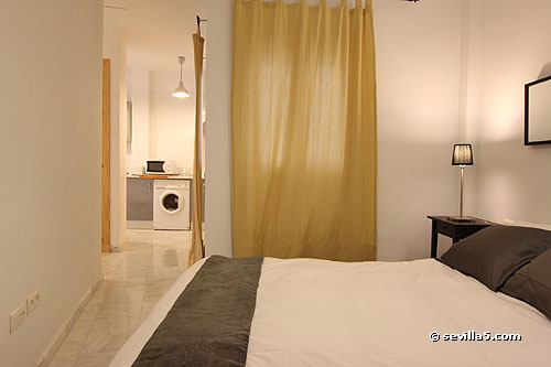 On this view you can see that there is NO door from the bedroom towards the kitchenette. Please note that both bedrooms are not completely separated from the rest of the apartment.