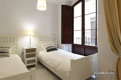 Next to the living is a sleeping area, separated by a curtain, with two twin beds of 90x200cm.