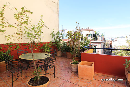 The roof top is for the common use of the guests of the three apartments. There is plenty of outdoor seating and a shower.
