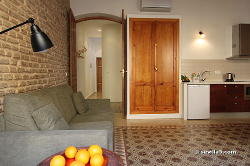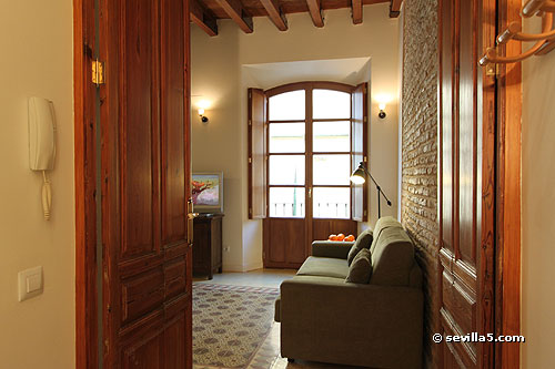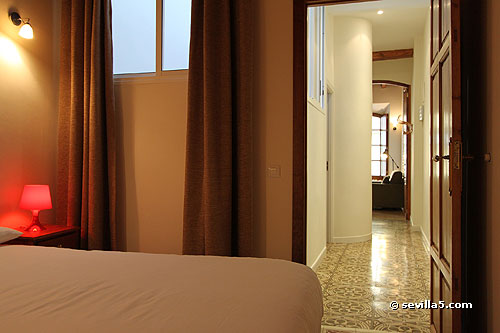 View towards the hall and bedroom. At the end of the aisle, on the right, and in front of the bedroom is a small interior courtyard, which gives light to the bedroom.