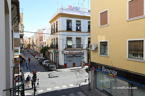 Window view on Relator street. Calle Feria is crossing from left to right.
