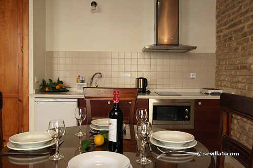 The kitchenette features a fridge, stove-top, microwave, toaster, kettle, etc. A washing machine is located on the ground floor of the house and is shared in between the two apartments.