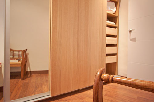 The bedroom has a large wardrobe to store your belongings and a full body mirror.