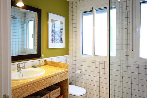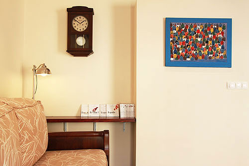 The room, quiet and bright, has a window overlooking the interior courtyard.