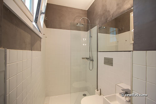 Sleeping area with 2 twin beds put together. The window faces calle Teodosio.