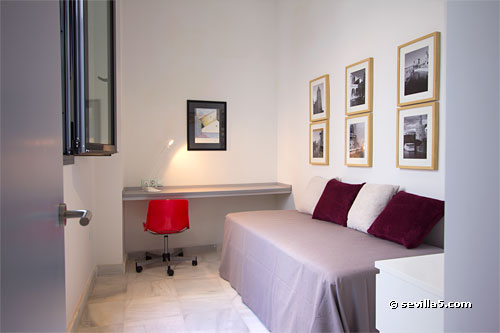The second bedroom has 2 beds, a single with a pull-out bed underneath.