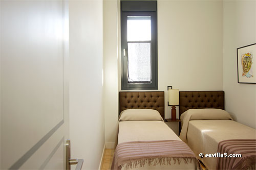 Bedroom 3 with twin beds and en-suite bathroom, on the upper level.