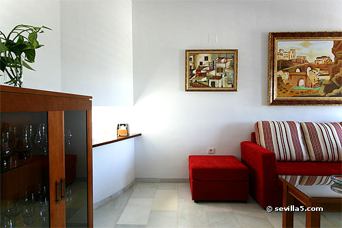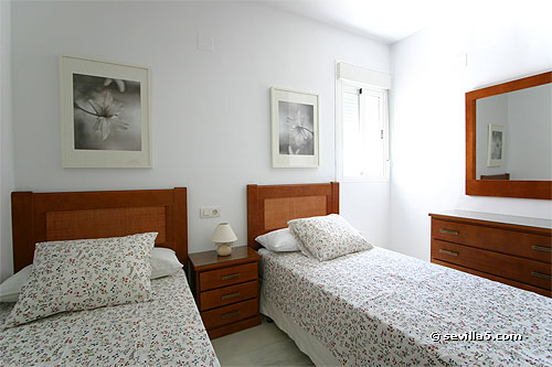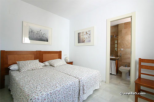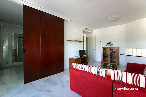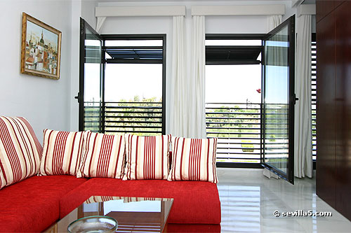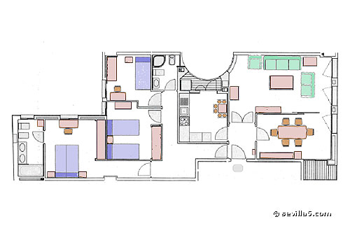 Floorplan Torneo apartment (129 sqm). On the right is the living area with large windows overlooking the Guadalquivir river. On the left, the sleeping area, with quiet interior windows.
