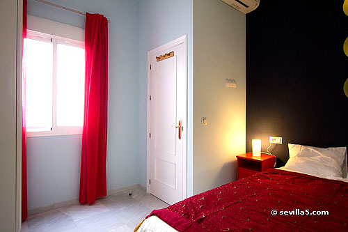Bedroom with a double bed and wardrobe (on the left, just seen).