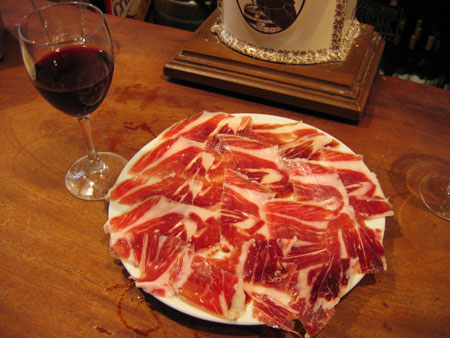 Inside El Rinconcillo we find one of the specialties being prepared: jamón serrano is being carefully cut into thin slices.