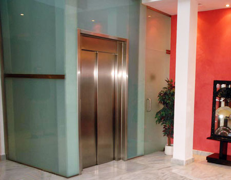 Elevator in central patio.